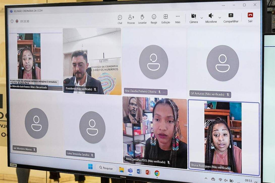 Durante oitiva na Comissão de Cidadania e Direitos Humanos da Assembleia Legislativa, a vereadora Alice Carvalho (PSOL), de Santa Maria, relatou nesta quarta-feira ter recebido ameaça de morte, enviada aos seus e-mails institucional e pessoal, exigindo sua renúncia ao mandato. A parlamentar, recebida em audiência virtual por articulação da deputada Luciana Genro (PSOL), já foi alvo de agressões físicas em 2018 e teve sua residência atingida por tiros em 2020. No episódio mais recente, ocorrido em 18 de outubro, ela recebeu mensagem com ofensas raciais, misóginas, supremacistas e contra a esquerda, além de detalhes técnicos sobre como seria o assassinato. O e-mail foi enviado um dia após evento na Câmara Municipal de Santa Maria com presença de deputadas e da Comissão Externa da Câmara Federal sobre feminicídios. Diante dos fatos, o colegiado decidiu encaminhar solicitação às delegacias de Intolerância e Crimes Cibernéticos para apuração dos episódios.