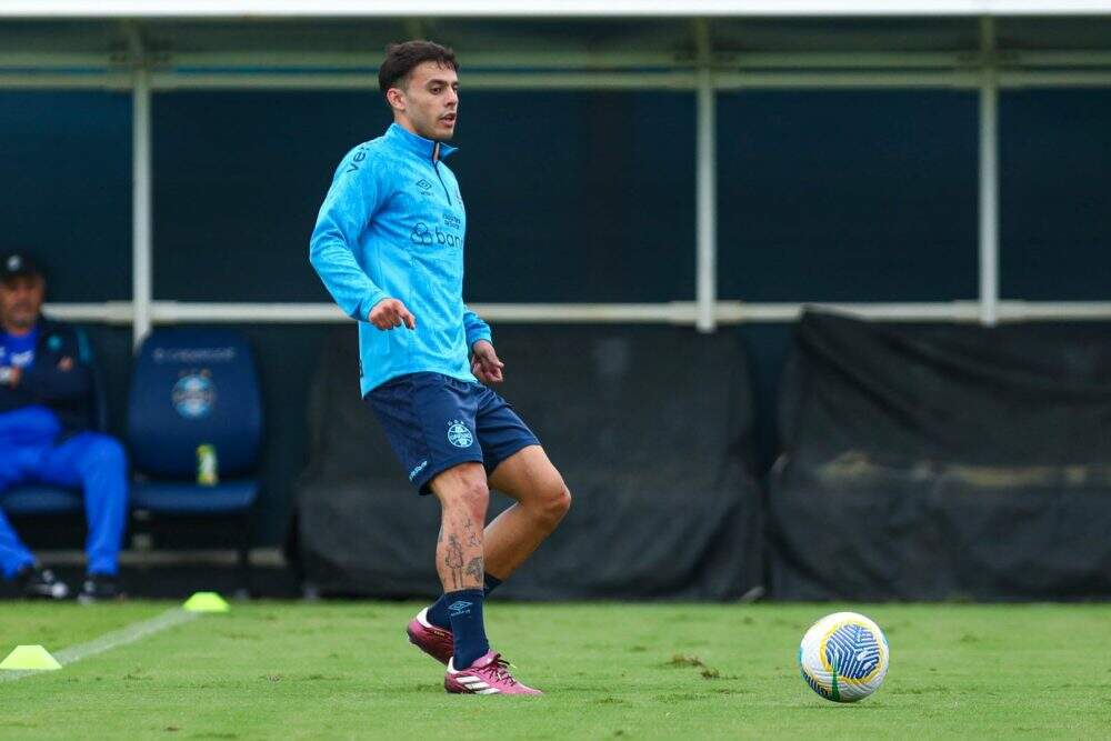 Ao lado de seus companheiros de equipe, o uruguaio participou do último treino na manhã deste sábado (13) antes da estreia do Grêmio no Brasileirão 2024 contra o Vasco, neste domingo (14), no Rio de Janeiro.