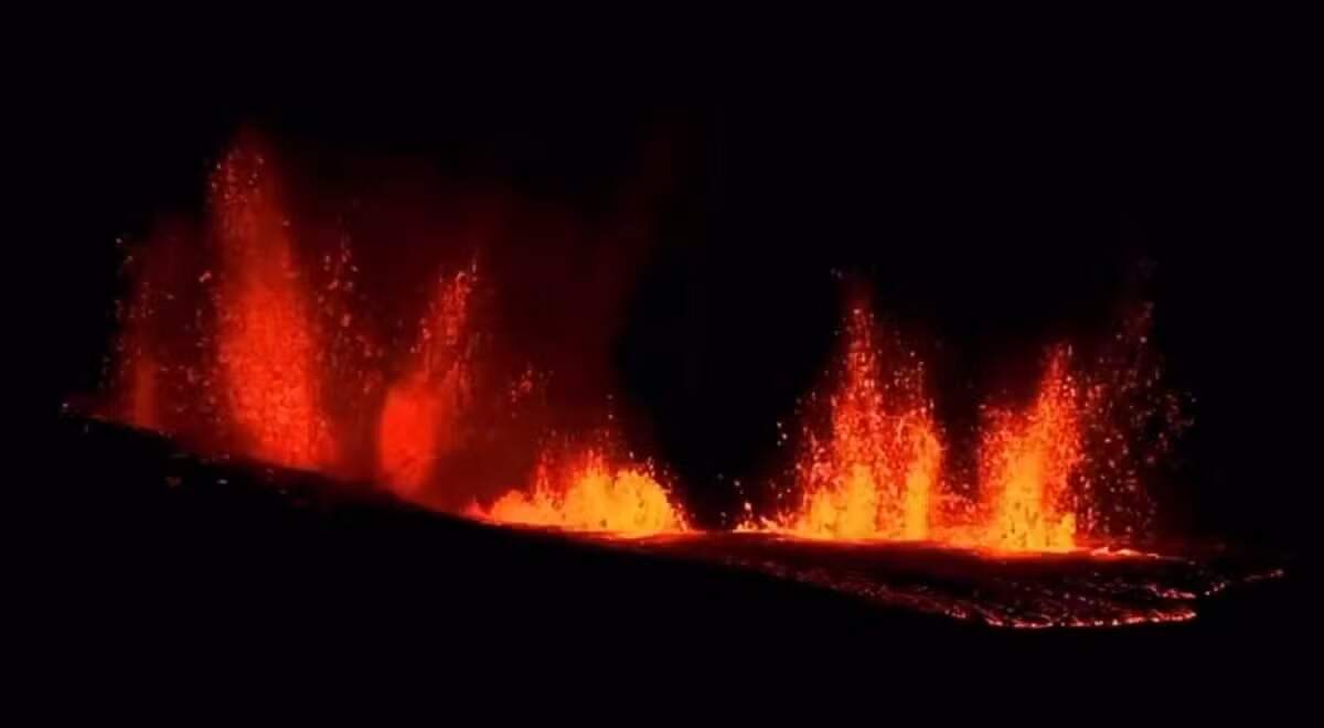 Foto: ReproduçãoUm vulcão entrou em erupção na Islândia neste domingo (14), após centenas de terremotos abalarem a península de Reykjanes. O fenômeno, que ocorreu por volta das 8h no horário local (5h em Brasília), provocou evacuações em uma cidade perto de onda uma fissura se abriu e expeliu lava no mês passado.