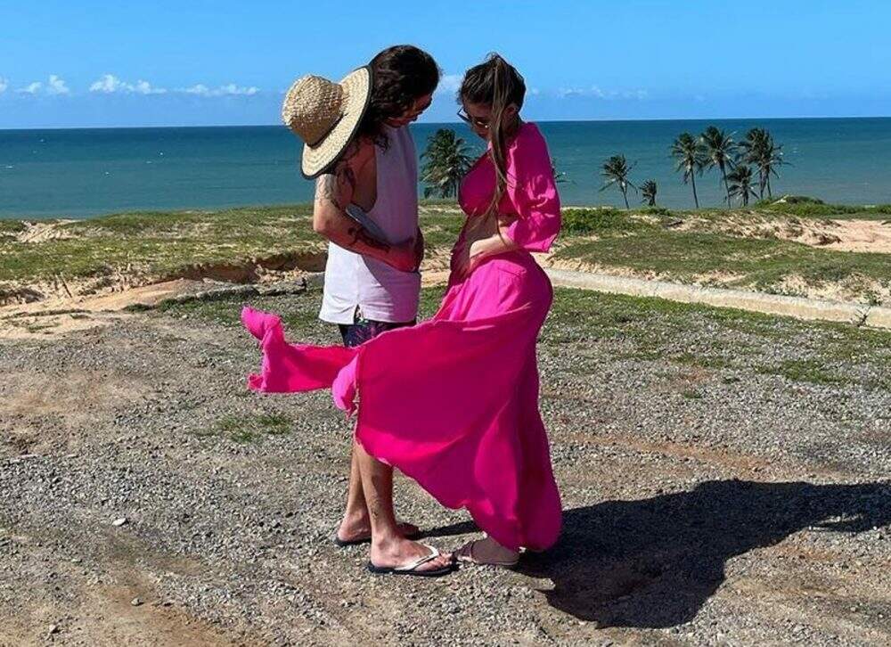 Whindersson Nunes está celebrando o primeiro Dia das Mães com a namorada, Maria Lina, que espera o primeiro filho do casal. No Instagram, o humorista publicou uma foto em que os dois aparecem juntos na praia.