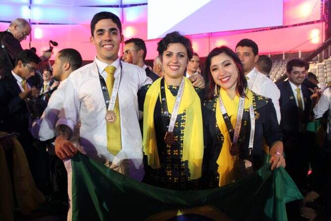 Os alunos do Senac-RS, Vitória Menezes, Gérson Nunes e Júlia Goulart, conquistaram medalha de excelência nas ocupações Cabeleireiro, Cozinha e Cuidados de Saúde e Apoio Social na WorldSkills Abu Dhabi 2017. O reconhecimento foi entregue durante a cerimônia de encerramento do evento, que aconteceu na Du Arena, em Abu Dhabi, na quinta-feira passada, e reuniu mais de 10 mil pessoas.